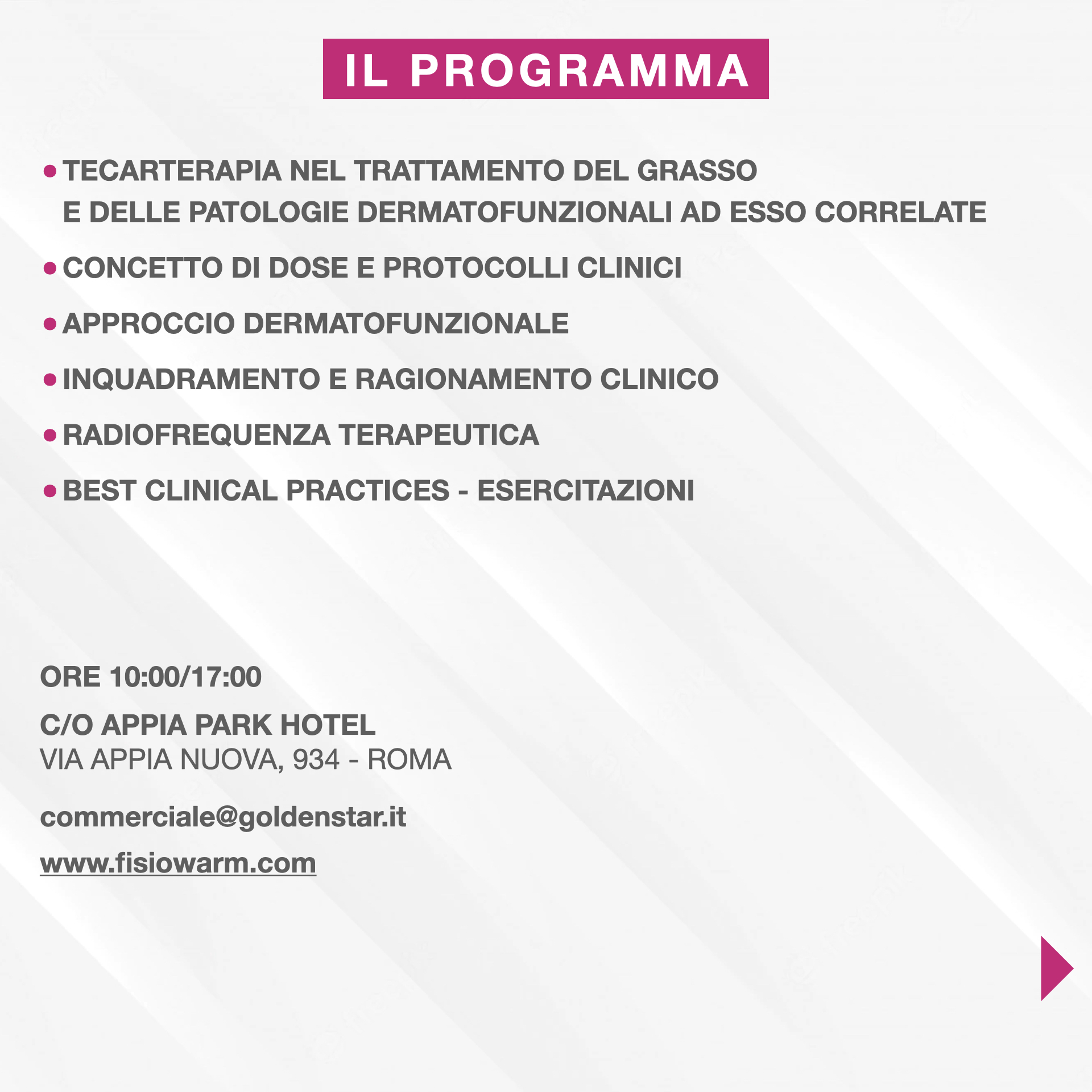 Roma, 23.03.2024 "Tecarterapia e Fisioterapia Dermatofunzionale"