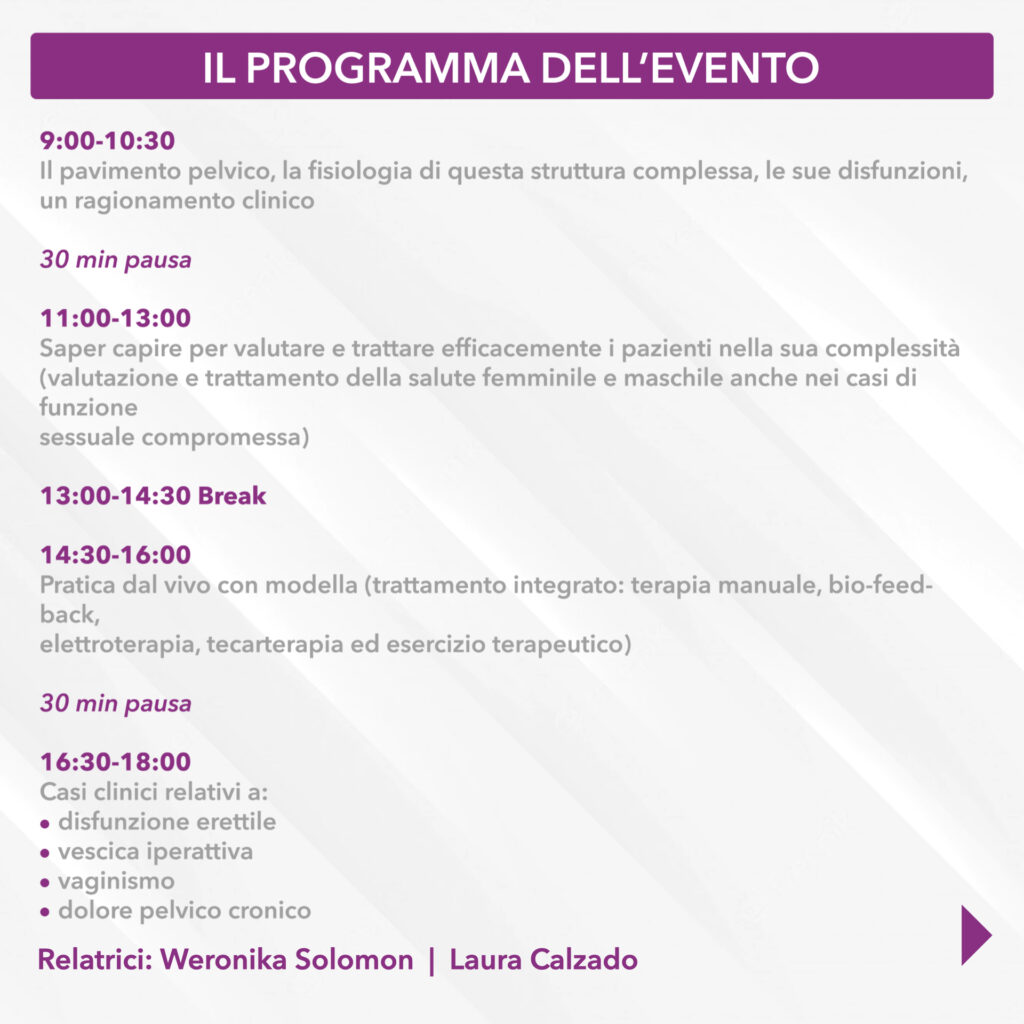 14.30 – 16.30 Utilizzo della Tecarterapia in riabilitazione del pavimento pelvico